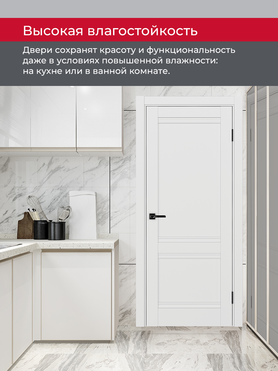 При соблюдении условий эксплуатации, эта дверь будет радовать вас много лет за счет современного, толстого покрытия экошпон (толщиной 0.2 мм) без кромок на торцах.