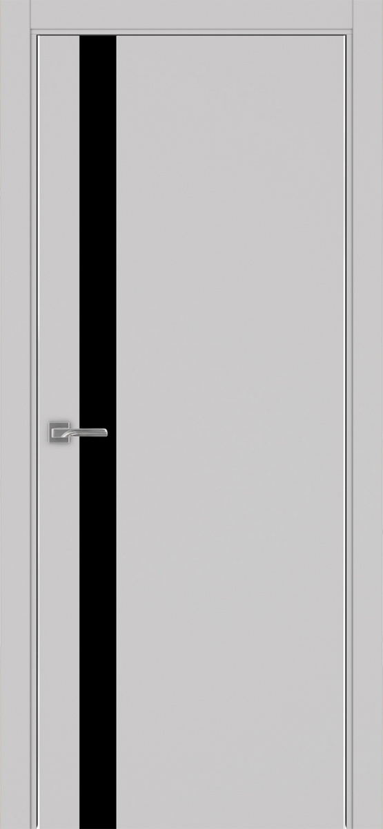 Дверь межкомнатная Оптима Порте Неаполь 211 (кромка алюминиевая с 2х сторон с врезкой под замок Морелли М1895 (М1885)), цвет пепельный, экошпон, стекло лакобель черное