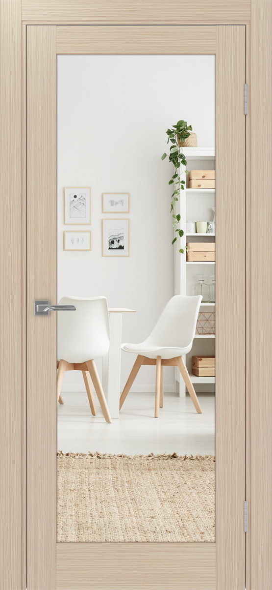 Такой вариант можно считать очень практичным и универсальным, поскольку подходит он к самым разным интерьерам в оформлении помещений. Часто такую дверь ставят в небольших комнатах, чтобы зрительно увеличить пространство.