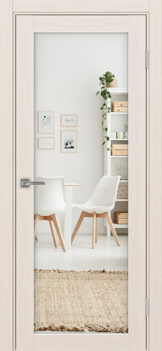 Такой вариант можно считать очень практичным и универсальным, поскольку подходит он к самым разным интерьерам в оформлении помещений. Часто такую дверь ставят в небольших комнатах, чтобы зрительно увеличить пространство.