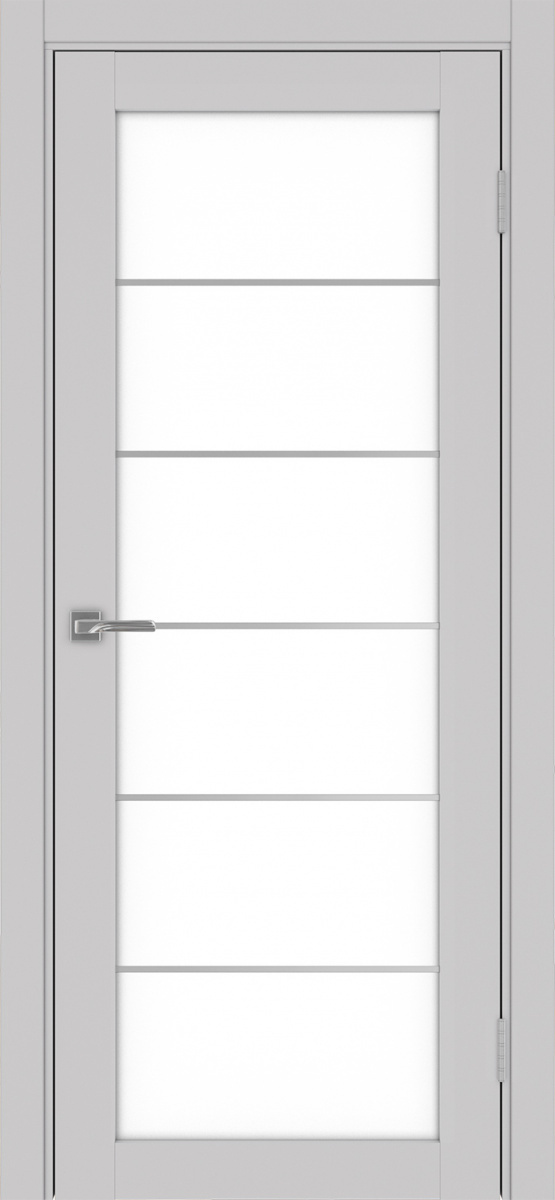 Дверь межкомнатная Оптима Порте Турин 501.2 АСС молдинг SC, цвет пепельный, экошпон, стекло лакобель белое