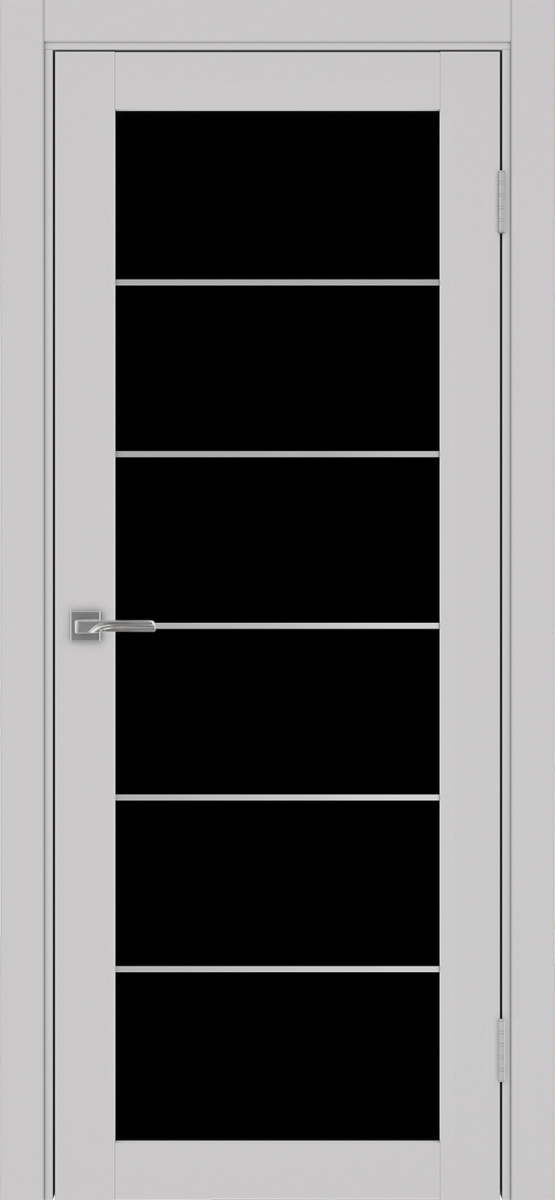 Дверь межкомнатная Оптима Порте Турин 501.2 АСС молдинг SC, цвет пепельный, экошпон, стекло лакобель черное