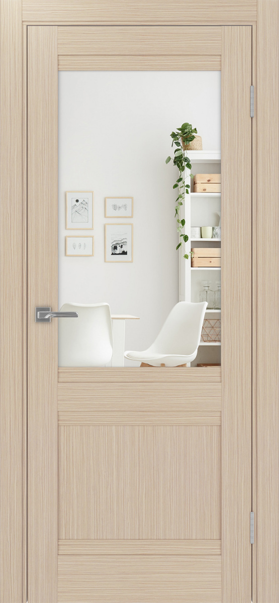 Такой вариант можно считать очень практичным и универсальным, поскольку подходит он к самым разным интерьерам в оформлении помещений. Часто такую дверь ставят в небольших комнатах, чтобы зрительно увеличить пространство.