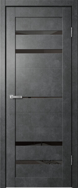 Дверь межкомнатная Сибирь Профиль Барн B3, цвет темный бетон, экошпон, стекло лакобель черное