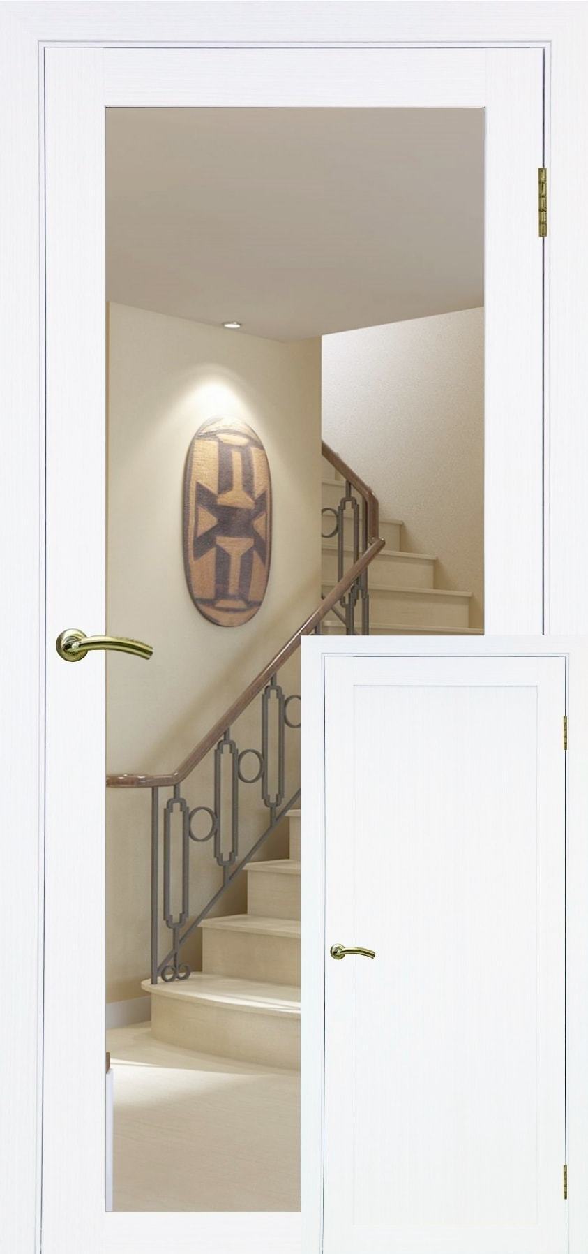 Такой вариант можно считать очень практичным и универсальным, поскольку подходит он к самым разным интерьерам в оформлении помещений. Часто такую дверь ставят в небольших комнатах, чтобы зрительно увеличить пространство.