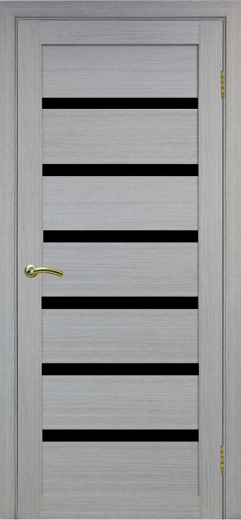 Дверь межкомнатная Оптима Порте Турин 507.12, цвет серый дуб, экошпон, стекло лакобель черное