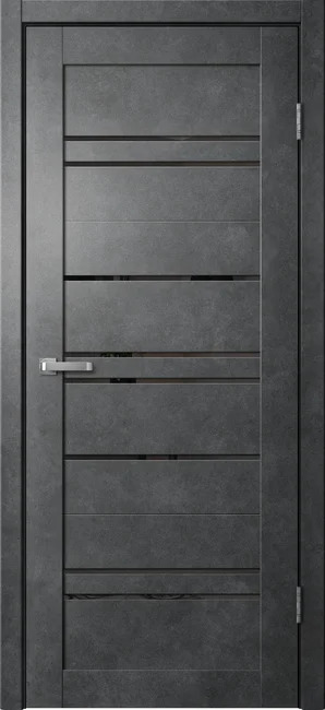Дверь межкомнатная Сибирь Профиль Барн B2, цвет темный бетон, экошпон, стекло лакобель черное