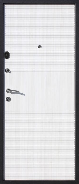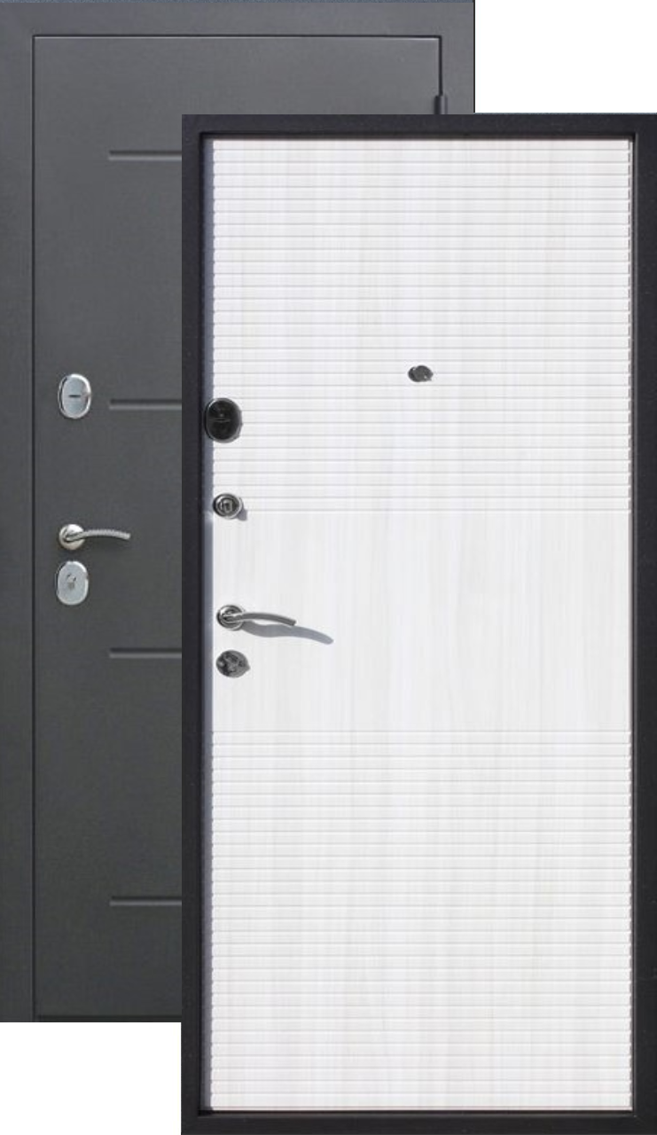 Качественная российская дверь со стильной внешней отделкой муар черный и красивой декоративной панелью толщиной 8 в цвете ясень белый. Прекрасно подойдет для установки в квартиру. Надежная модель, которая прослужит долгие годы.