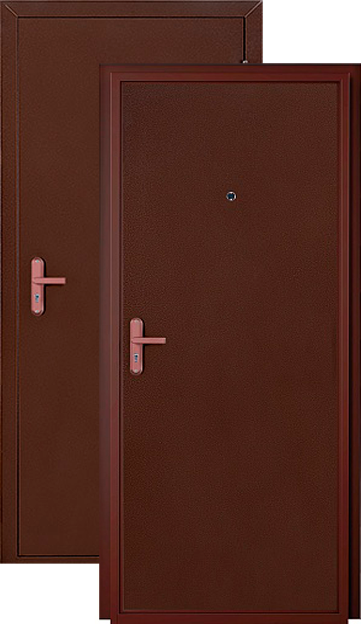 Достаточно тонкий металл, такие двери подойдут для временного пользования, например, в пустой квартире в новостройке. Они не защищают квартиру от взлома и легко режутся. Самый бюджетный ценовой сегмент.