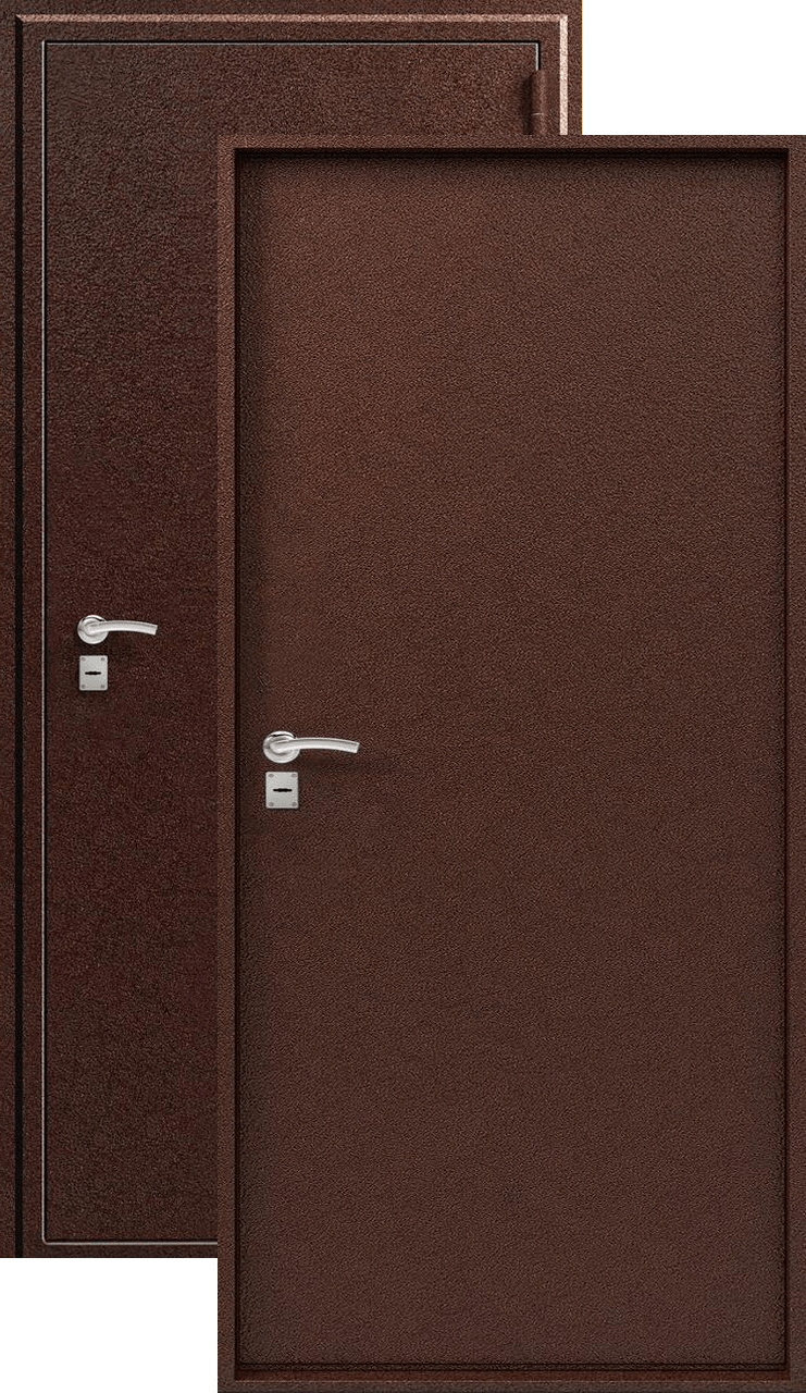 Достаточно тонкий металл, такие двери подойдут для временного пользования, например, в пустой квартире в новостройке. Они не защищают квартиру от взлома и легко режутся. Самый бюджетный ценовой сегмент.
