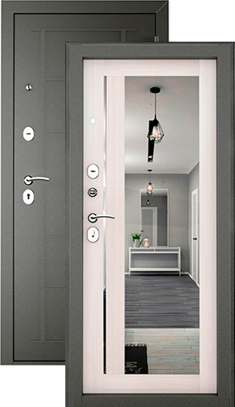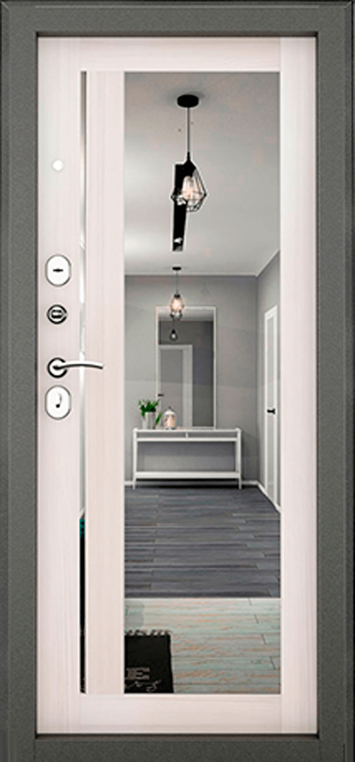 Качественная российская дверь с большим зеркалом на внутренней панели. Прекрасно подойдет для установки в частном доме, так как устойчива к перепаду температур, воздействию ультрафиолета и атмосферных осадков. Для установки обязательно нужен холодный тамбур. Надежная модель, которая прослужит долгие годы.