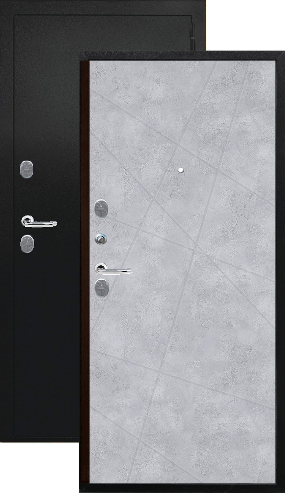Качественная российская дверь со стильной внешней отделкой муар черный и красивой декоративной панелью толщиной 10 в цвете бетон серый. Прекрасно подойдет для установки в квартиру. Надежная модель, которая прослужит долгие годы.