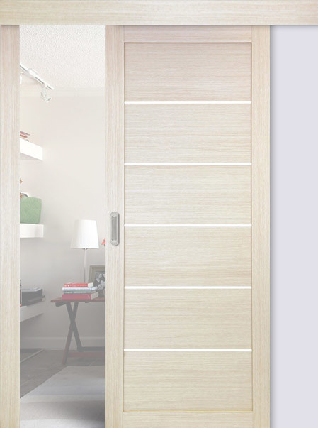 Такая дверь включает в себя одну или две одинаковые створки. Они плавно, поступательно двигаются при открывании параллельно той вертикальной поверхности, на которой они установлены.