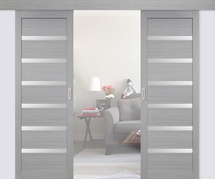 Раздвижная дверь включает в себя одну или две одинаковые створки. Они плавно, поступательно двигаются при открывании параллельно той вертикальной поверхности, на которой они установлены.