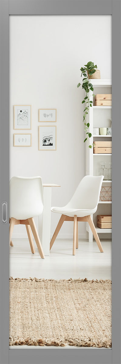 Такой вариант можно считать очень практичным и универсальным, поскольку подходит он к самым разным интерьерам в оформлении помещений. Часто такую дверь ставят в небольших комнатах, чтобы зрительно увеличить пространство.