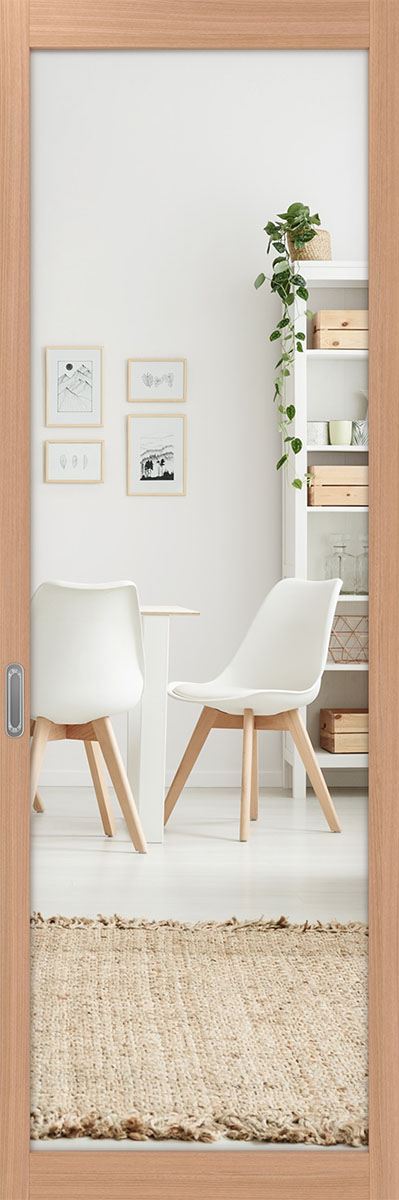 Такой вариант можно считать очень практичным и универсальным, поскольку подходит он к самым разным интерьерам в оформлении помещений. Часто такую дверь ставят в небольших комнатах, чтобы зрительно увеличить пространство.