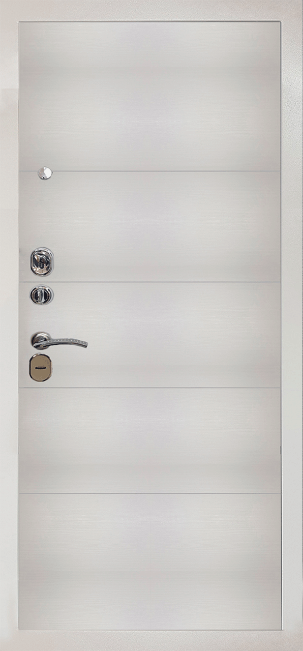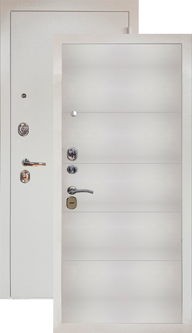 Повышенной надежности российская дверь c красивой декоративной панелью толщиной 12мм в цвете вельвет белый горизонт. Прекрасно подойдет для установки в квартиру. Солидная модель, которая хорошо защитит и подчеркнет статус.