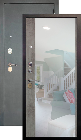 Теплая дверь входная Алекс дорс Магнум зеркало, 2 замка, 1,5 мм металл, (черный муар+светлый бетон)