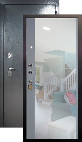 Повышенной надежности российская дверь с большим зеркалом на внутренней панели. Прекрасно подойдет для установки в квартиру. Солидная модель, которая хорошо защитит и подчеркнет статус.