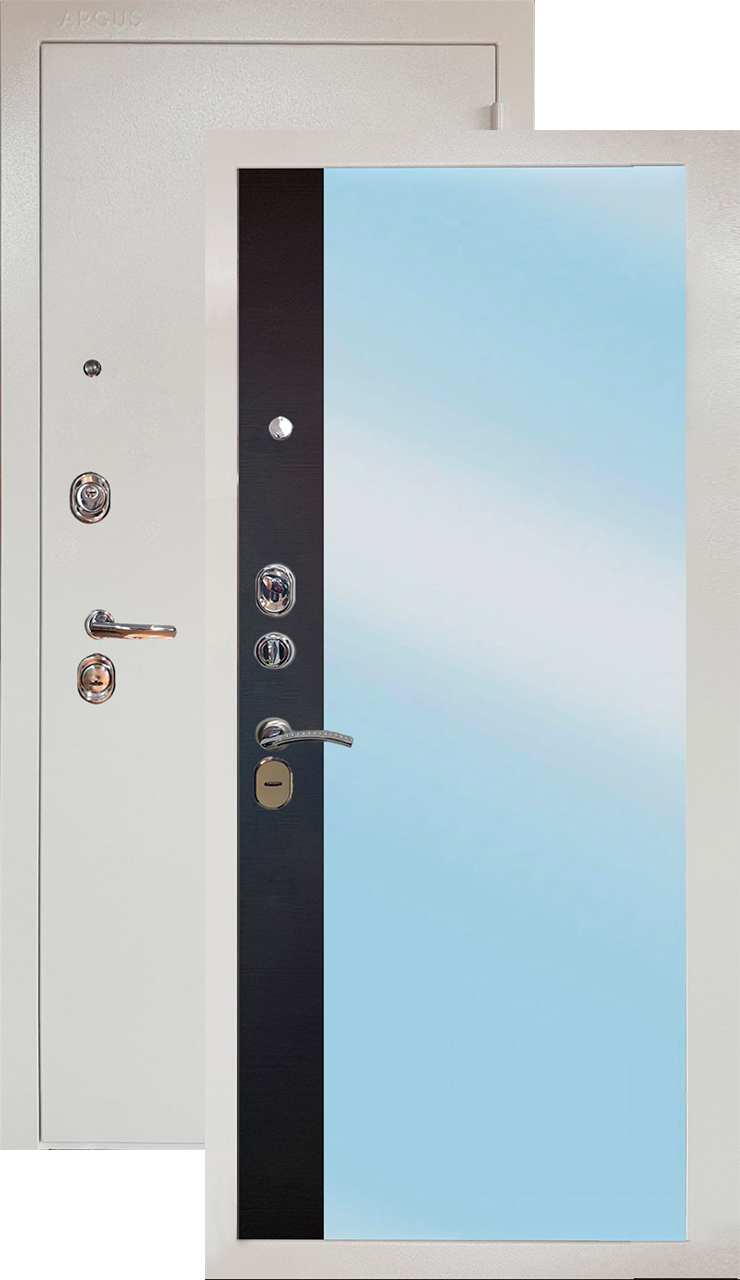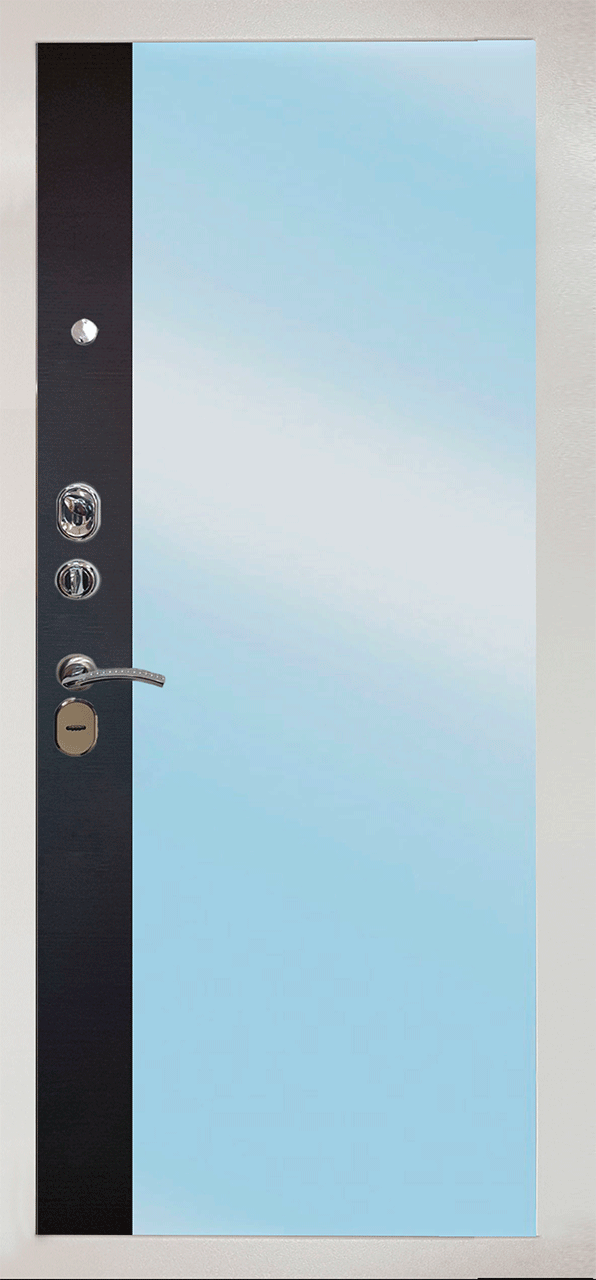 Повышенной надежности российская дверь с большим зеркалом на внутренней панели. Прекрасно подойдет для установки в квартиру. Солидная модель, которая хорошо защитит и подчеркнет статус.