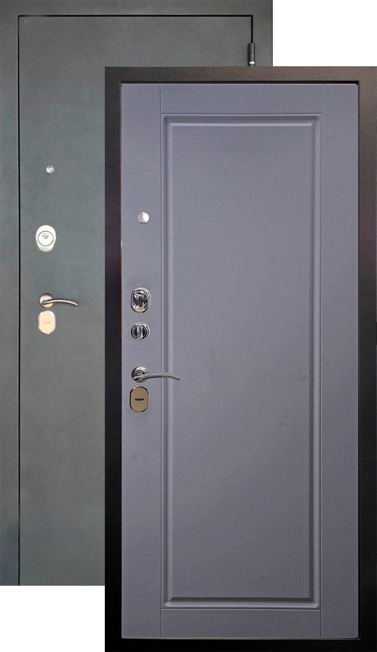 Повышенной надежности российская дверь со стильной внешней отделкой муар черный и красивой декоративной панелью толщиной 12 в цвете силк маус. Прекрасно подойдет для установки в квартиру. Солидная модель, которая хорошо защитит и подчеркнет статус.