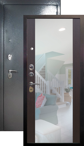 Повышенной надежности российская дверь с большим зеркалом на внутренней панели. Прекрасно подойдет для установки в квартиру. Солидная модель, которая хорошо защитит и подчеркнет статус.