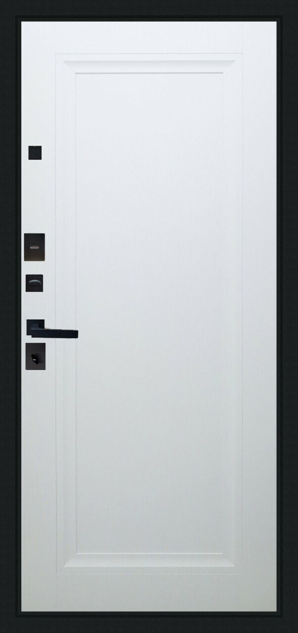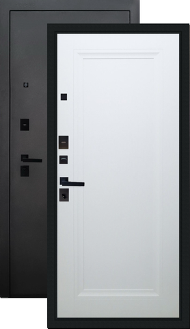 Повышенной надежности российская сейф-дверь со стильной внешней отделкой муар черный и красивой декоративной панелью толщиной 12 в цвете вайт. Прекрасно подойдет для установки в квартиру. Солидная модель, которая хорошо защитит и подчеркнет статус.