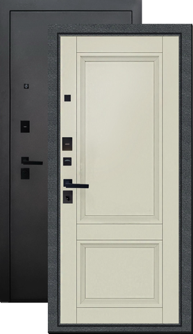 Повышенной надежности российская сейф-дверь со стильной внешней отделкой муар черный и красивой декоративной панелью толщиной 12 в цвете ваниль винил. Прекрасно подойдет для установки в квартиру. Солидная модель, которая хорошо защитит и подчеркнет статус.