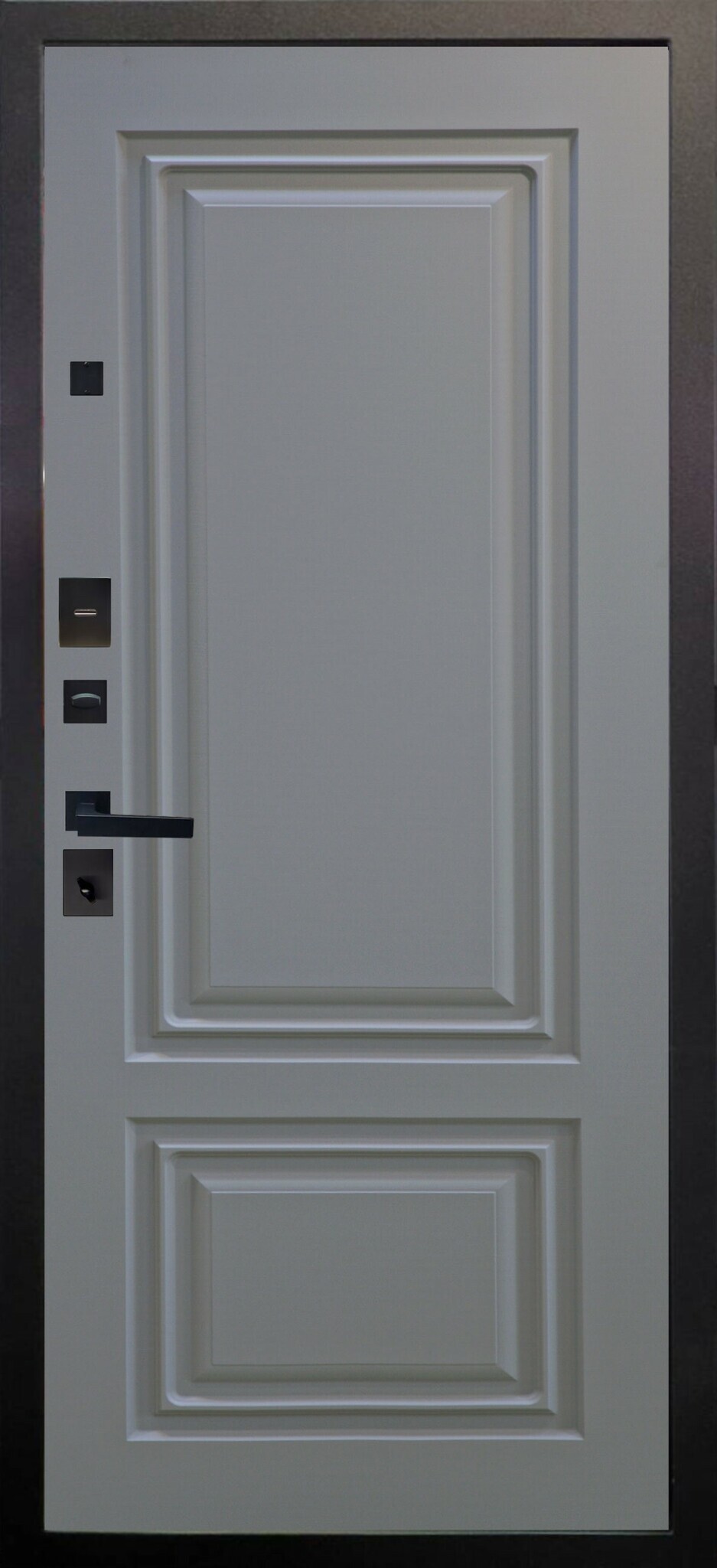 Повышенной надежности российская сейф-дверь со стильной внешней отделкой муар черный и красивой декоративной панелью толщиной 12 в цвете силк маус. Прекрасно подойдет для установки в квартиру. Солидная...