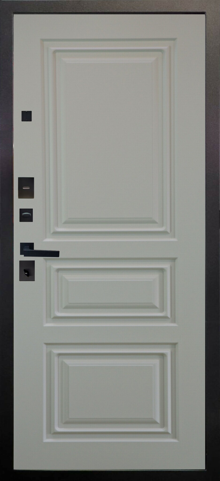 Повышенной надежности российская сейф-дверь со стильной внешней отделкой муар черный и красивой декоративной панелью толщиной 12 в цвете софт милк. Прекрасно подойдет для установки в квартиру. Солидная модель, которая хорошо защитит и подчеркнет статус.