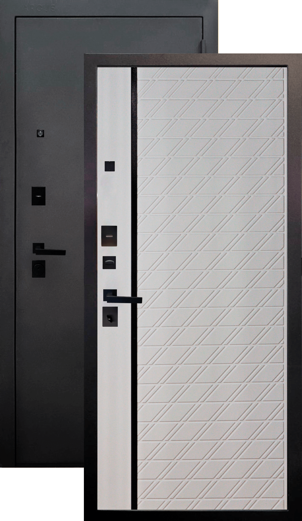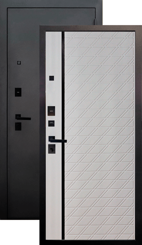 Повышенной надежности российская сейф-дверь со стильной внешней отделкой муар черный и красивой декоративной панелью в цвете белый софт. Прекрасно подойдет для установки в квартиру. Солидная модель, которая хорошо защитит и подчеркнет статус.