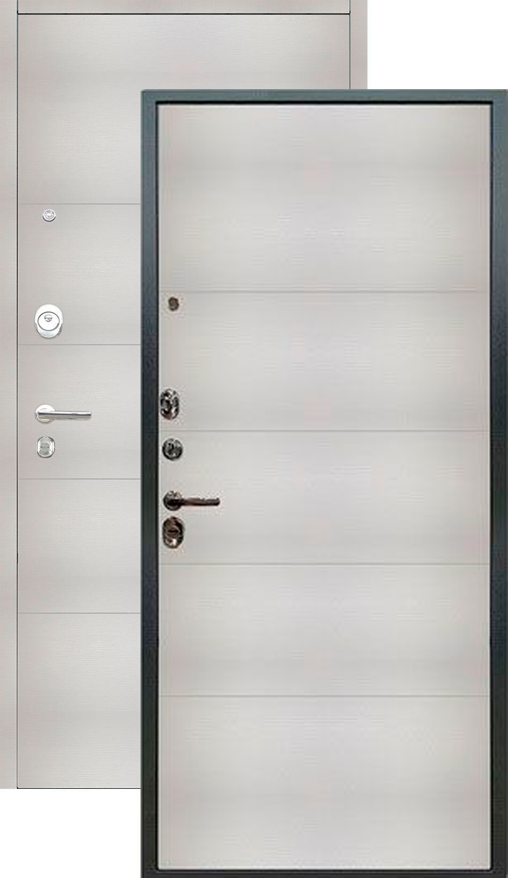 Повышенной надежности российская сейф-дверь c красивой декоративной панелью толщиной 16мм в цвете вельвет белый горизонт. Прекрасно подойдет для установки в квартиру. Солидная модель, которая хорошо защитит и подчеркнет статус.
