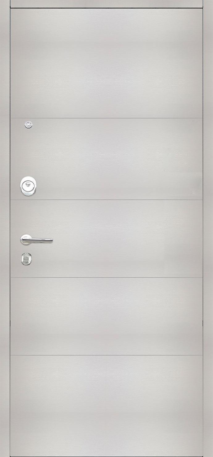 Имеет высокую прочность, благодаря толщине стали 1,8 мм. Оснащена двумя надежными замками, минимум один из которых имеет высший класс взломостойкости по ГОСТ 5089-2003 (4 класс). Есть врезная броненакладка, защищающая цилиндровый замок от высверливания. Она утоплена в дверное полотно, поэтому ее практически невозможно сбить. Есть ночная задвижка — дополнительная защита от взлома. Никто не сможет зайти, вскрыв замок, когда вы дома.