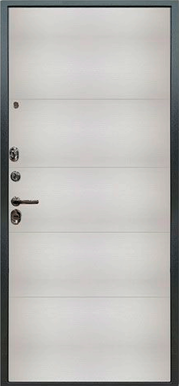 Имеет высокую прочность, благодаря толщине стали 1,8 мм. Оснащена двумя надежными замками, минимум один из которых имеет высший класс взломостойкости по ГОСТ 5089-2003 (4 класс). Есть врезная броненакладка, защищающая цилиндровый замок от высверливания. Она утоплена в дверное полотно, поэтому ее практически невозможно сбить. Есть ночная задвижка — дополнительная защита от взлома. Никто не сможет зайти, вскрыв замок, когда вы дома.
