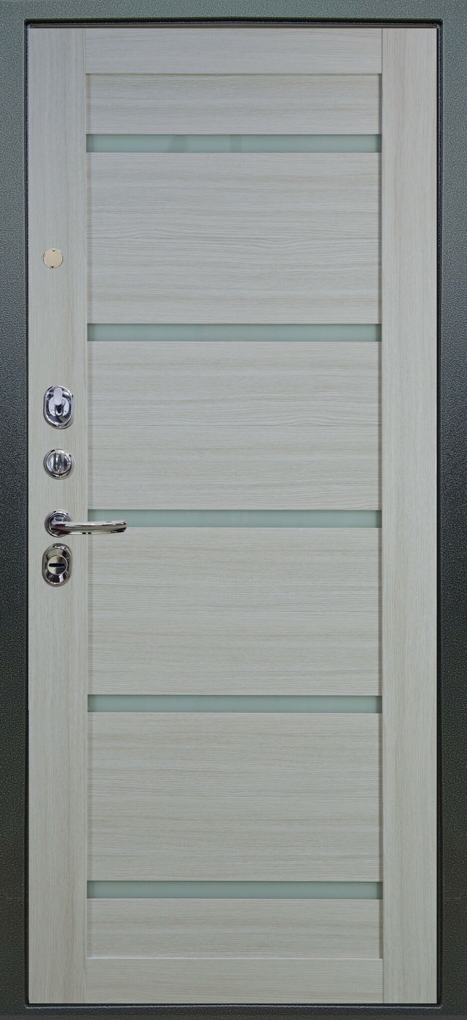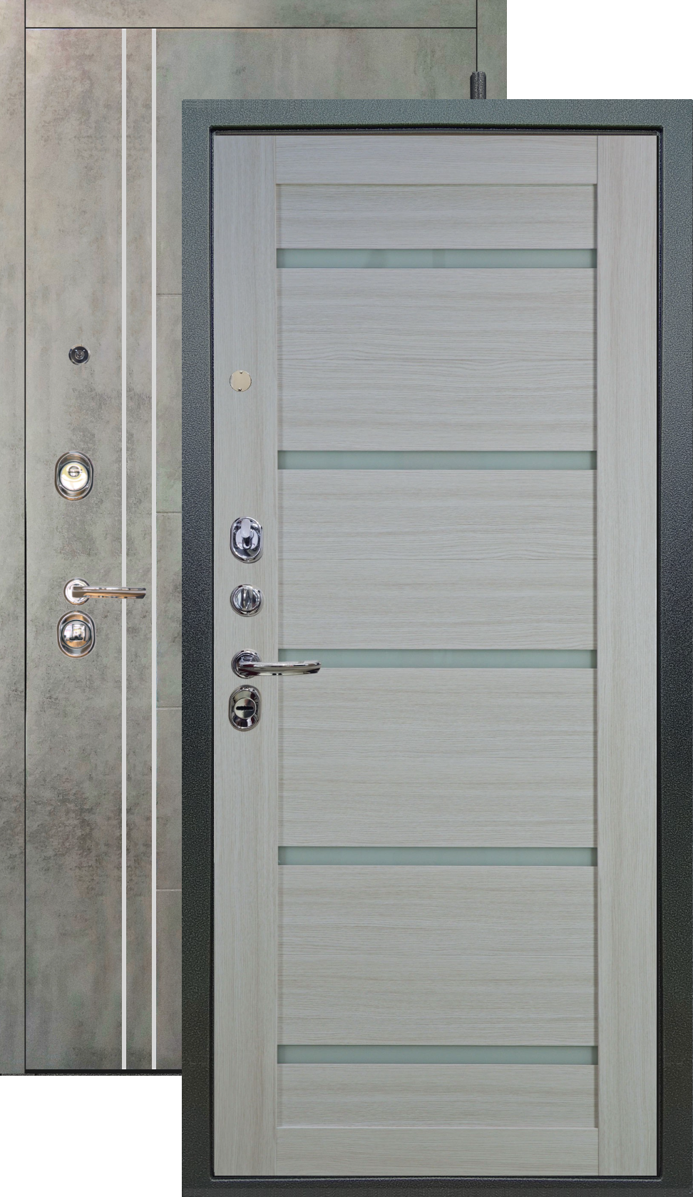 Имеет высокую прочность, благодаря толщине стали 1,8 мм. Оснащена двумя надежными замками, минимум один из которых имеет высший класс взломостойкости по ГОСТ 5089-2003 (4 класс). Есть врезная броненакладка, защищающая цилиндровый замок от высверливания. Она утоплена в дверное полотно, поэтому ее практически невозможно сбить. Есть ночная задвижка — дополнительная защита от взлома. Никто не сможет зайти, вскрыв замок, когда вы дома.