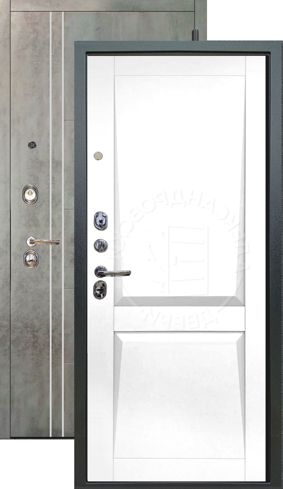 Имеет высокую прочность, благодаря толщине стали 1,8 мм. Оснащена двумя надежными замками, минимум один из которых имеет высший класс взломостойкости по ГОСТ 5089-2003 (4 класс). Есть врезная броненакладка, защищающая цилиндровый замок от высверливания. Она утоплена в дверное полотно, поэтому ее практически невозможно сбить. Есть ночная задвижка — дополнительная защита от взлома. Никто не сможет зайти, вскрыв замок, когда вы дома.