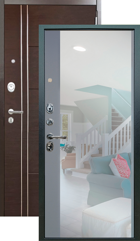 Повышенной надежности российская сейф-дверь с большим зеркалом на внутренней панели. Прекрасно подойдет для установки в квартиру. Солидная модель, которая хорошо защитит и подчеркнет статус.