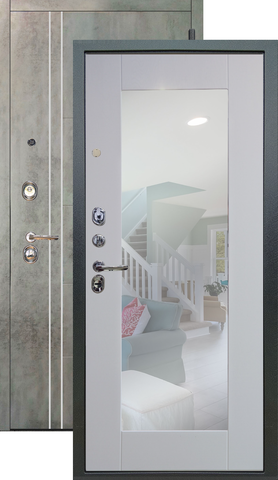 Теплая дверь входная Аргус Люкс 3К 2П Лофт/Милли зеркало, 2 замка, 1,8 мм металл, (темный бетон+белый роял вуд)