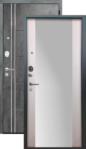 Теплая дверь входная Аргус Люкс 3К 2П Лофт/Вояжзеркало, 2 замка, 1,8 мм металл, (темный бетон+белое дерево)