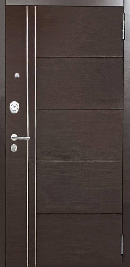Имеет высокую прочность, благодаря толщине стали 1,8 мм. Оснащена двумя надежными замками, минимум один из которых имеет высший класс взломостойкости по ГОСТ 5089-2003 (4 класс). Есть врезная броненакладка, защищающая цилиндровый замок от высверливания. Она утоплена в дверное полотно, поэтому ее практически невозможно сбить. Есть ночная задвижка — дополнительная защита от взлома. Никто не сможет зайти, вскрыв замок, когда вы дома.