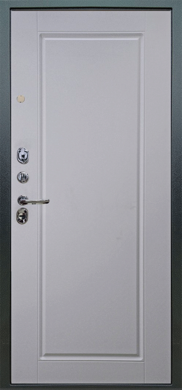 Имеет высокую прочность, благодаря толщине стали 1,8 мм. Оснащена двумя надежными замками, минимум один из которых имеет высший класс взломостойкости по ГОСТ 5089-2003 (4 класс). Есть врезная броненакладка, защищающая цилиндровый замок от высверливания. Она утоплена в дверное полотно, поэтому ее практически невозможно сбить. Есть ночная задвижка — дополнительная защита от взлома. Никто не сможет зайти, вскрыв замок, когда вы дома.