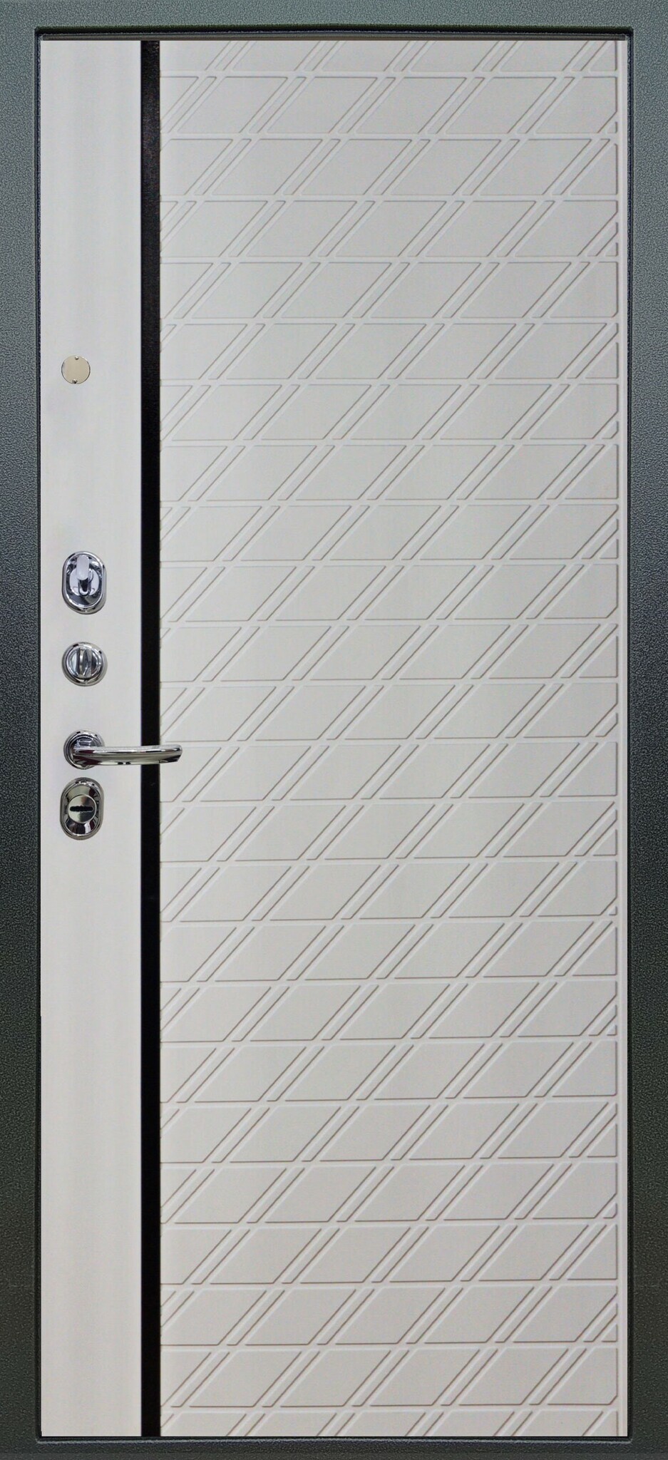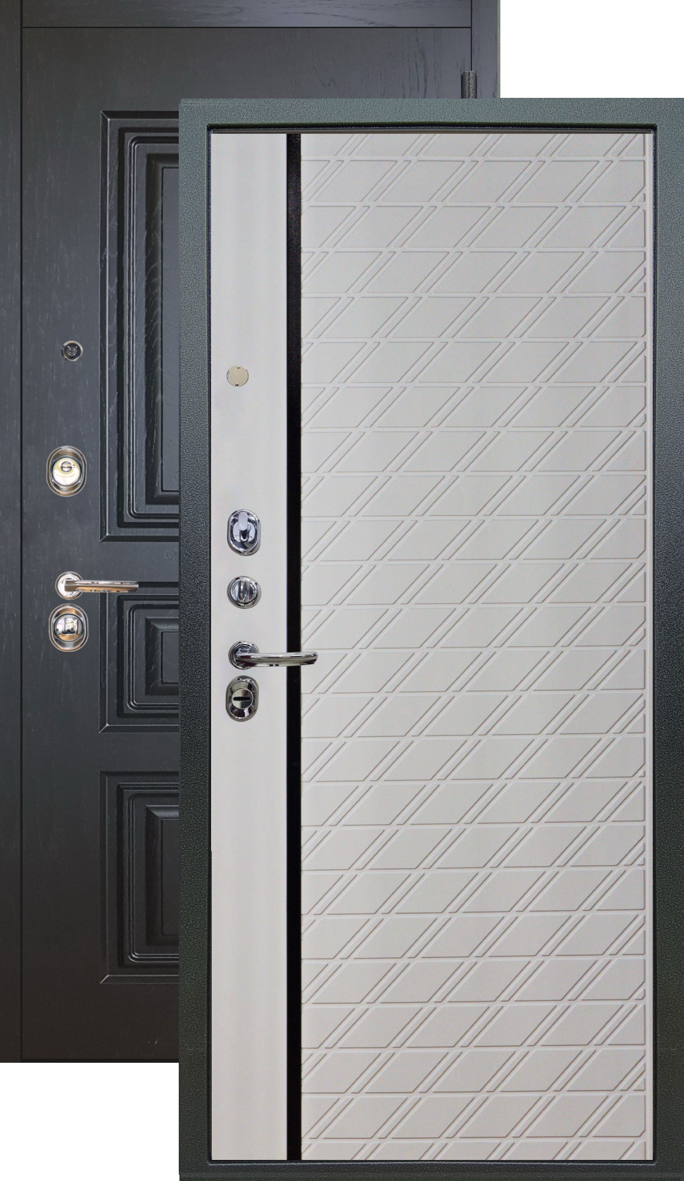 Имеет высокую прочность, благодаря толщине стали 1,8 мм. Оснащена двумя надежными замками, минимум один из которых имеет высший класс взломостойкости по ГОСТ 5089-2003 (4 класс). Есть врезная броненакладка, защищающая цилиндровый замок от высверливания. Она утоплена в дверное полотно, поэтому ее практически невозможно сбить. Есть ночная задвижка — дополнительная защита от взлома. Никто не сможет зайти, вскрыв замок, когда вы дома.