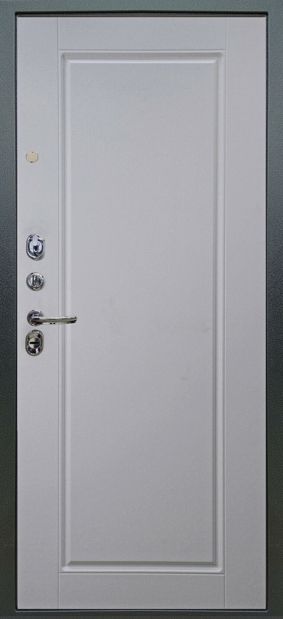 Повышенной надежности российская сейф-дверь c красивой декоративной панелью толщиной 12мм в цвете белый софт. Прекрасно подойдет для установки в квартиру. Солидная модель, которая хорошо защитит и подчеркнет статус.