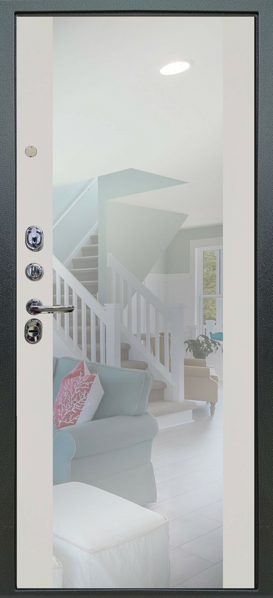 Повышенной надежности российская сейф-дверь с большим зеркалом на внутренней панели. Прекрасно подойдет для установки в квартиру. Солидная модель, которая хорошо защитит и подчеркнет статус.