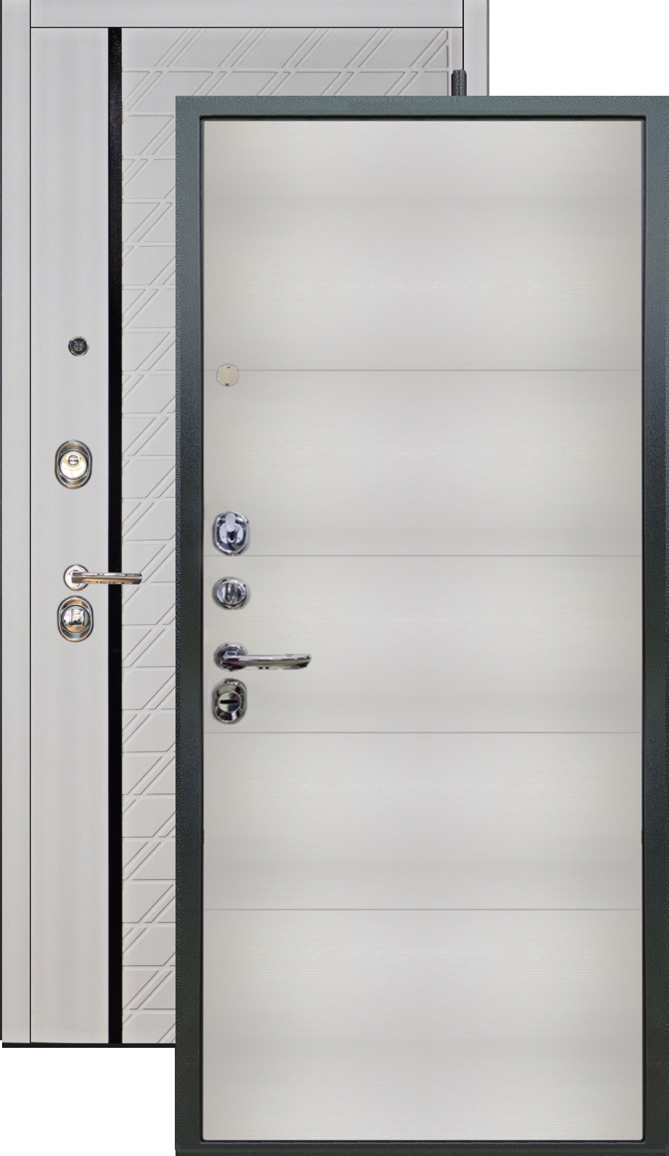 Имеет высокую прочность, благодаря толщине стали 1,8 мм. Оснащена двумя надежными замками, минимум один из которых имеет высший класс взломостойкости по ГОСТ 5089-2003 (4 класс). Есть врезная броненакладка, защищающая цилиндровый замок от высверливания. Она утоплена в дверное полотно, поэтому ее практически невозможно сбить. Есть ночная задвижка — дополнительная защита от взлома. Никто не сможет зайти, вскрыв замок, когда вы дома.