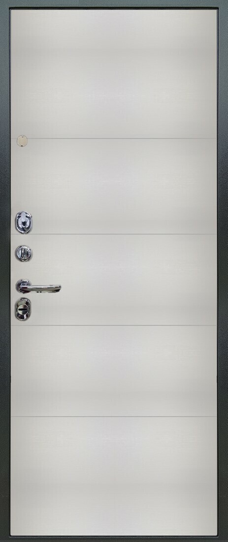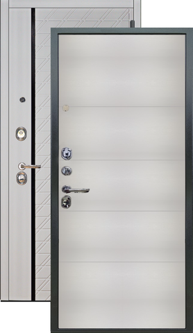 Повышенной надежности российская сейф-дверь c красивой декоративной панелью толщиной 12мм в цвете вельвет белый горизонт. Прекрасно подойдет для установки в квартиру. Солидная модель, которая хорошо защитит и подчеркнет статус.