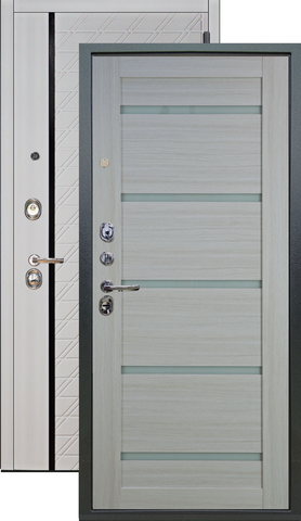 Имеет высокую прочность, благодаря толщине стали 1,8 мм. Оснащена двумя надежными замками, минимум один из которых имеет высший класс взломостойкости по ГОСТ 5089-2003 (4 класс). Есть врезная броненакладка, защищающая цилиндровый замок от высверливания. Она утоплена в дверное полотно, поэтому ее практически невозможно сбить. Есть ночная задвижка — дополнительная защита от взлома. Никто не сможет зайти, вскрыв замок, когда вы дома.