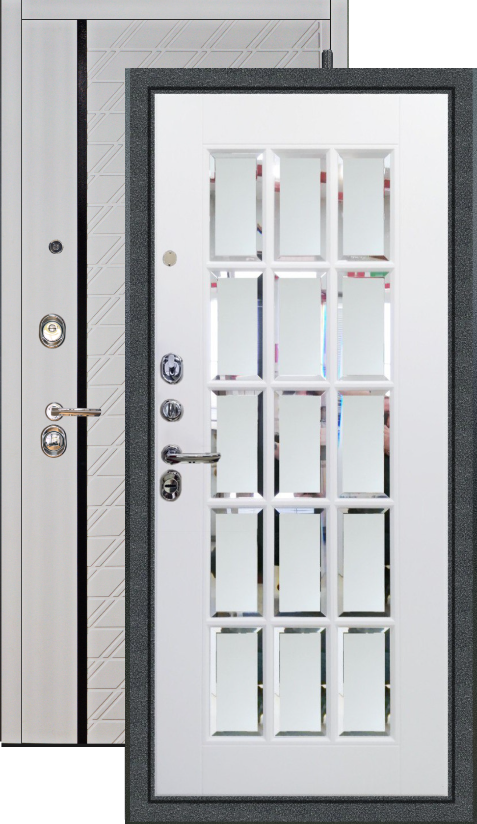 Имеет высокую прочность, благодаря толщине стали 1,8 мм. Оснащена двумя надежными замками, минимум один из которых имеет высший класс взломостойкости по ГОСТ 5089-2003 (4 класс). Есть врезная броненакладка, защищающая цилиндровый замок от высверливания. Она утоплена в дверное полотно, поэтому ее практически невозможно сбить. Есть ночная задвижка — дополнительная защита от взлома. Никто не сможет зайти, вскрыв замок, когда вы дома.