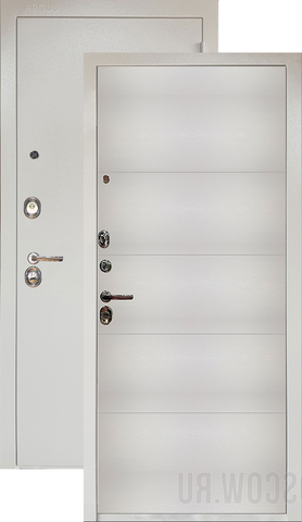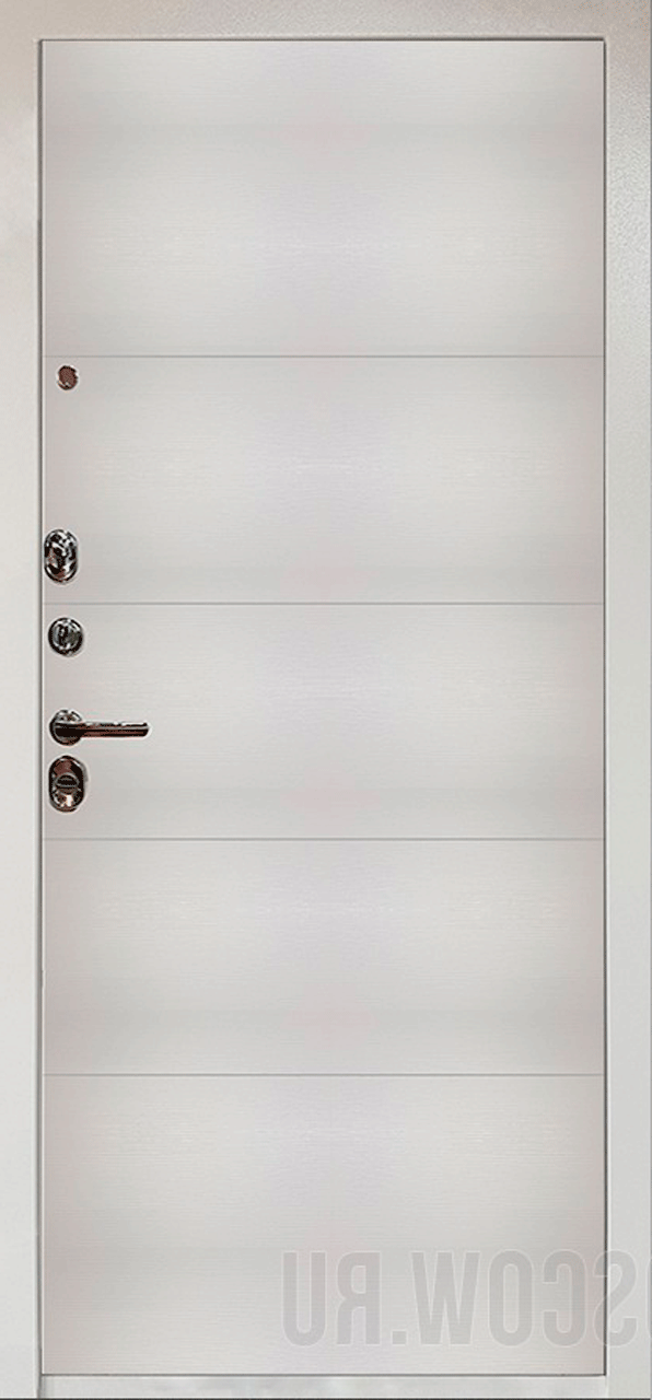 Повышенной надежности российская сейф-дверь c красивой декоративной панелью толщиной 12мм в цвете вельвет белый горизонт. Прекрасно подойдет для установки в квартиру. Солидная модель, которая хорошо защитит и подчеркнет статус.