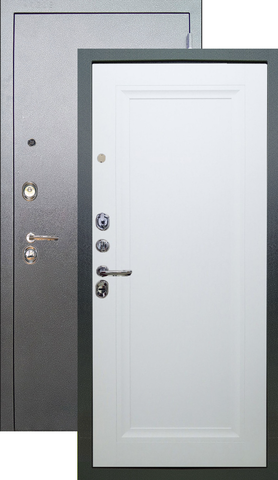 Имеет высокую прочность, благодаря толщине стали 1,8 мм. Оснащена двумя надежными замками, минимум один из которых имеет высший класс взломостойкости по ГОСТ 5089-2003 (4 класс). Есть врезная броненакладка, защищающая цилиндровый замок от высверливания. Она утоплена в дверное полотно, поэтому ее практически невозможно сбить. Есть ночная задвижка — дополнительная защита от взлома. Никто не сможет зайти, вскрыв замок, когда вы дома.